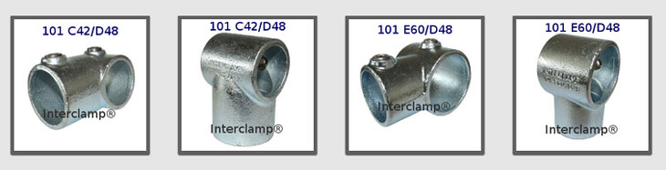 Used to join tubes of unequal size on level sites. This Interclamp cannot be used where through tube (horizontal in photo) has to be joined within the fitting.