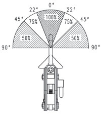 The CY plate clamps with hinged hook rings can be used for the safe handling of plate at various angles. It can lift plate from the horizontal and put down in the vertical. The hinged hook ring ensures adequate gripping pressure in every position, but the load capacity is reduced as seen in the diagram below showing the load / force capacities.