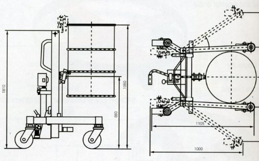 DT400 Hydraulic Drum Handles with 1070mm lift height with swivel legs to suit drum or pallet size