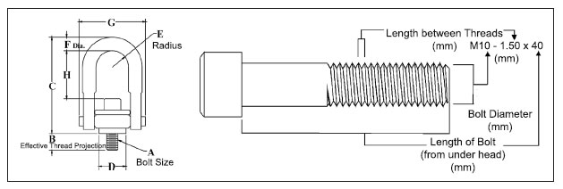 - BOLT SIZE IDENTIFICATION: The size of the bolt will be stated as in the drawing below. Illustration shows meaning of each dimension given.