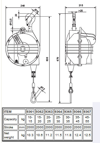 Tecna Balancers - Ribbed and Sealed Monobloc - 10,0 kgs to 55,0 kgs - Tool Spring Balancers - Lifting Hoisting & Winching
