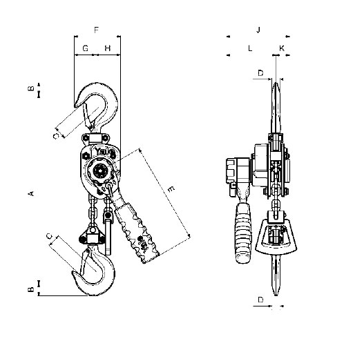 - Standard free chaining device to quickly attach the load or to pull the chain through the hoist in both directions.