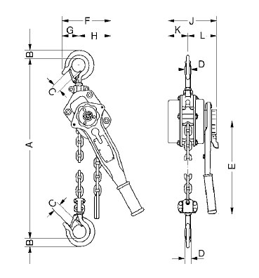 - Standard free chaining device to quickly attach the load or to pull the chain through the hoist in both directions.